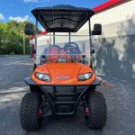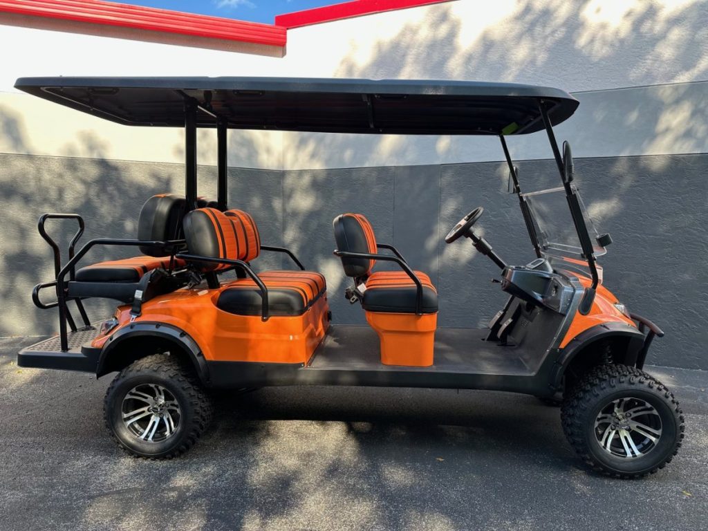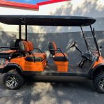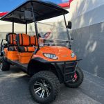 The ICON i60L is a lifted 6-passenger golf cart built for power and comfort. Featuring a 5 kW motor, 51 V lithium battery, four-wheel disc brakes, independent suspension, LED lighting, and 12″ aluminum wheels, it delivers smooth performance and head-turning style on or off the course