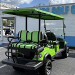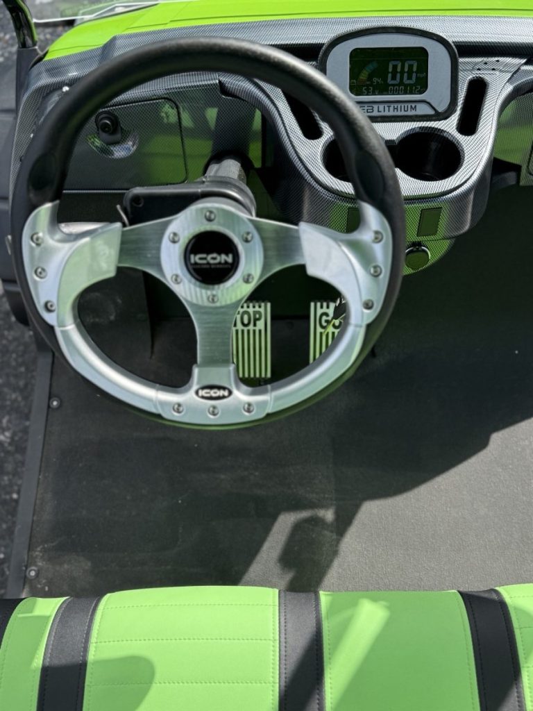 The ICON i60L is a lifted 6-passenger golf cart built for power and comfort. Featuring a 5 kW motor, 51 V lithium battery, four-wheel disc brakes, independent suspension, LED lighting, and 12″ aluminum wheels, it delivers smooth performance and head-turning style on or off the course