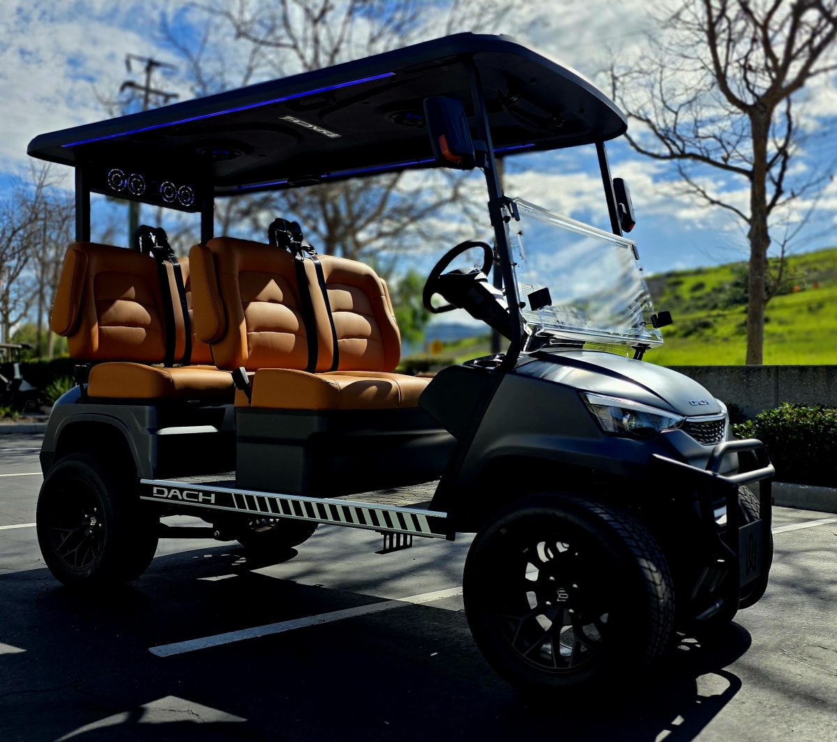 Sleek, powerful, and comfortable—the Apollo is built for both the course and the street. Featuring an efficient electric motor, smooth suspension, and premium styling, this cart is ready to impress.