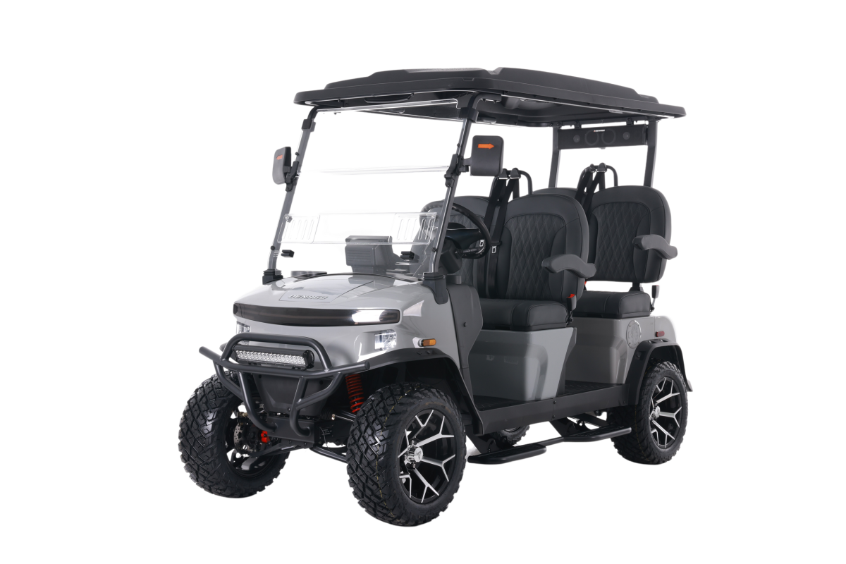 The Denago Rover XL expertly balances advanced tech, comfort, and dependability. This lifted, forward-facing four-seater EV is perfect for neighborhood cruising, resort use, and street-legal NEV applications.