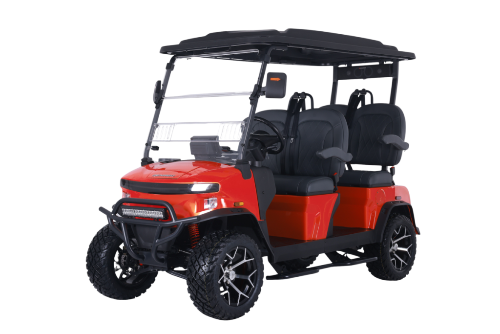 The Denago Rover XL expertly balances advanced tech, comfort, and dependability. This lifted, forward-facing four-seater EV is perfect for neighborhood cruising, resort use, and street-legal NEV applications.