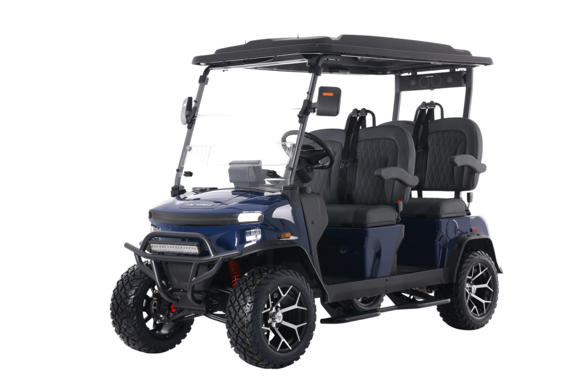 The Denago Rover XL expertly balances advanced tech, comfort, and dependability. This lifted, forward-facing four-seater EV is perfect for neighborhood cruising, resort use, and street-legal NEV applications.