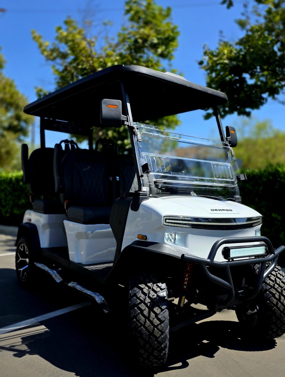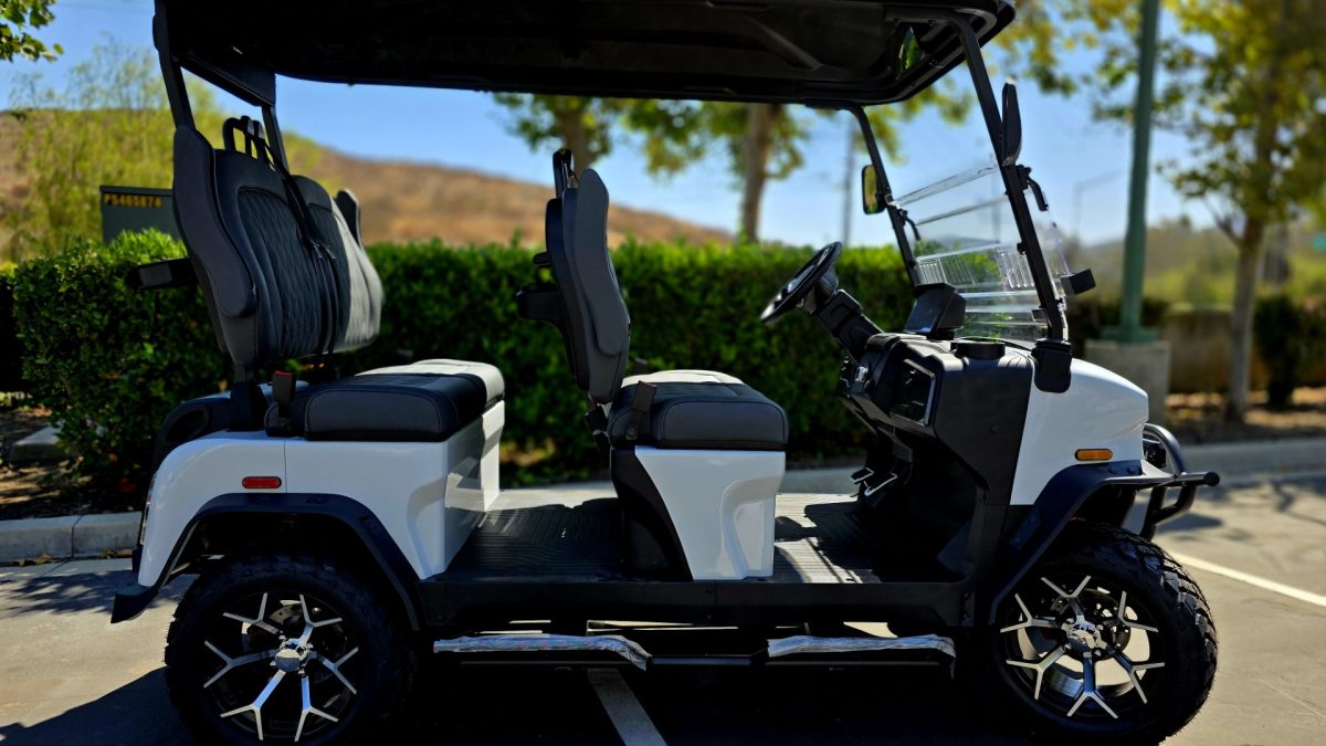 Built with a sturdy aluminum frame and powered by a 5 kW AC motor paired with a 105 Ah lithium battery, it delivers smooth acceleration, a 40‑mile range, and top speeds up to 25 mph. Inside, enjoy modern convenience with a 10″ touchscreen featuring Apple CarPlay/Android Auto, a backup camera, Bluetooth soundbar, USB ports, and rapid charging.