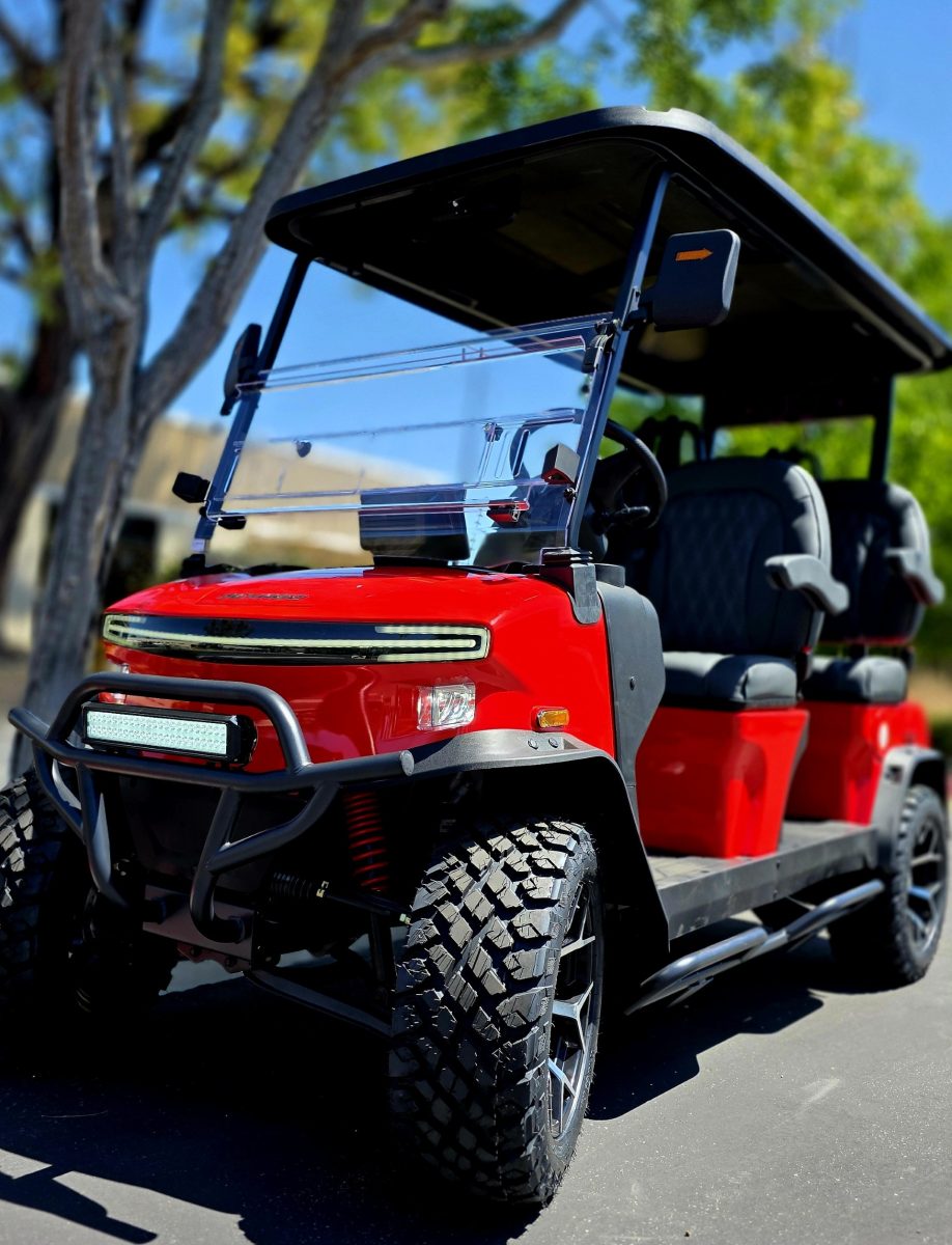 Built with a sturdy aluminum frame and powered by a 5 kW AC motor paired with a 105 Ah lithium battery, it delivers smooth acceleration, a 40‑mile range, and top speeds up to 25 mph. Inside, enjoy modern convenience with a 10″ touchscreen featuring Apple CarPlay/Android Auto, a backup camera, Bluetooth soundbar, USB ports, and rapid charging.