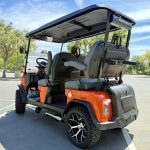 Built with a sturdy aluminum frame and powered by a 5 kW AC motor paired with a 105 Ah lithium battery, it delivers smooth acceleration, a 40‑mile range, and top speeds up to 25 mph. Inside, enjoy modern convenience with a 10″ touchscreen featuring Apple CarPlay/Android Auto, a backup camera, Bluetooth soundbar, USB ports, and rapid charging.