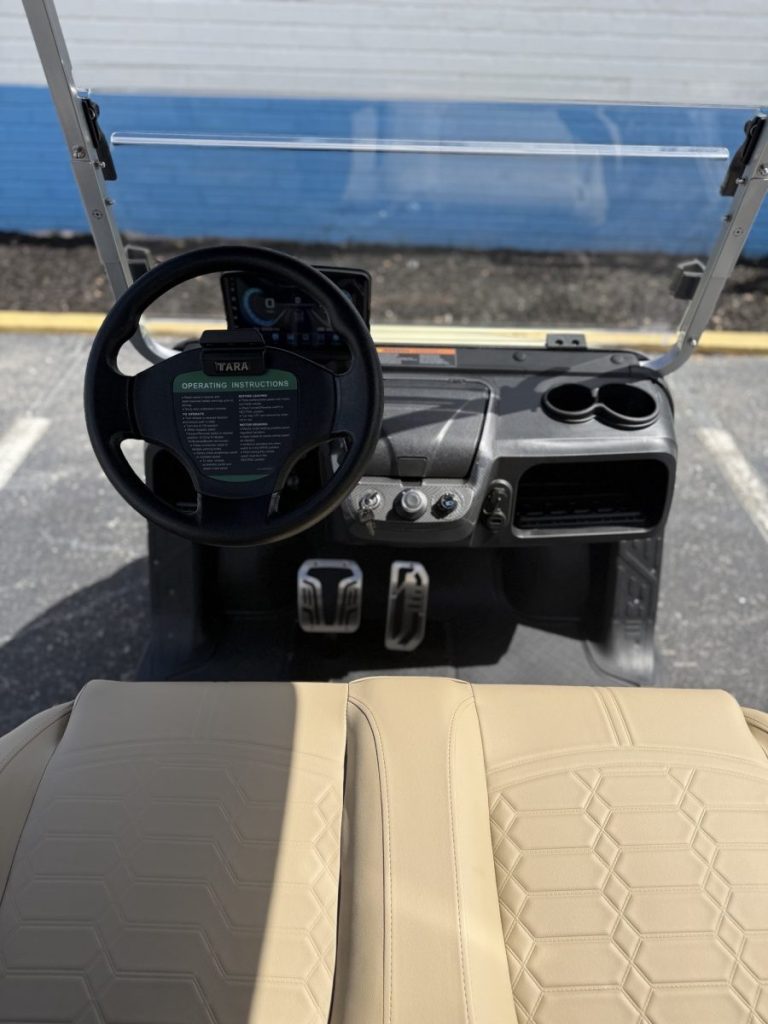 Tara’s luxury seating combines elegance, comfort, and durability. Upholstered in soft-touch imitation leather with an intricately carved pattern, these seats elevate every drive. Whether you’re navigating the course or cruising casually, Tara’s seating delivers a refined and relaxing experience.