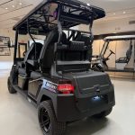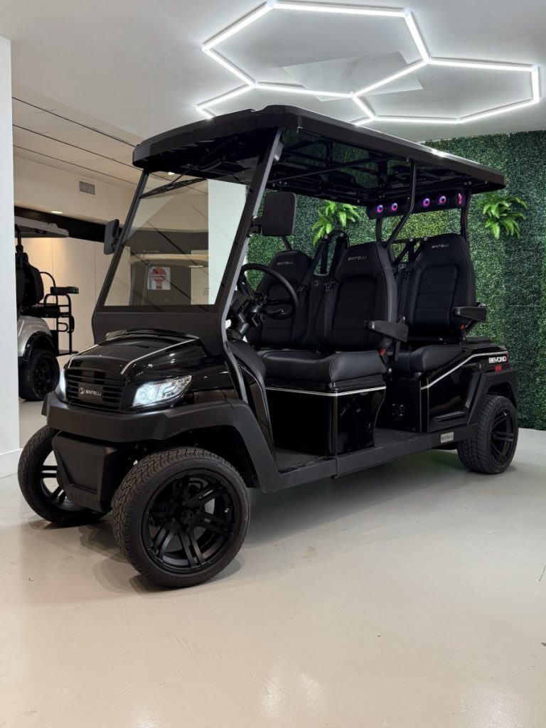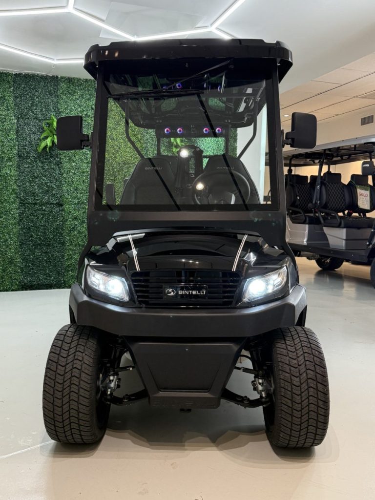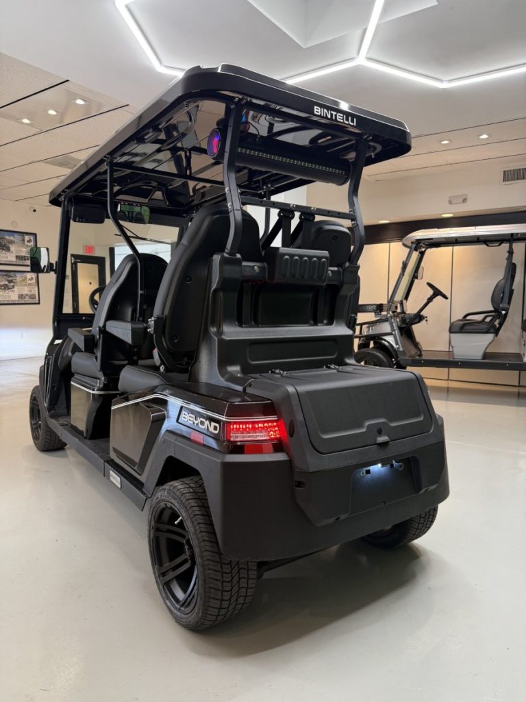 This Bintelli Beyond 4PF street legal golf cart is the newest addition to the Bintelli fleet and it is FULLY loaded! Complete with an aluminum frame, aluminum roof supports, AC motor, LED lighting, 23″ tires, a Bluetooth sound system, reverse camera, hydraulic disc brakes, two-tone premium seats, on-board smart charger, dual USB plugs, extended roof, rear flip seat, head lights, tail lights, turn signals, DOT windshield with wiper, DOT tires, DOT 3-point seat belts, and 105 AH Lithium Battery!