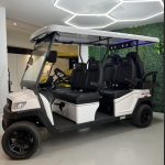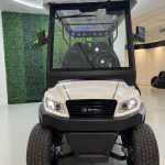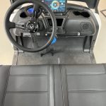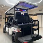 This Bintelli Beyond 6 street legal golf cart is the newest addition to the Bintelli fleet and it is FULLY loaded! Complete with an aluminum frame, aluminum roof supports, AC motor, LED lighting, 23″ tires, a Bluetooth sound system, reverse camera, hydraulic disc brakes, two-tone premium seats, on-board smart charger, dual USB plugs, extended roof, rear flip seat, head lights, tail lights, turn signals, DOT windshield with wiper, DOT tires, DOT 3-point seat belts, and 105 AH Lithium Battery!
