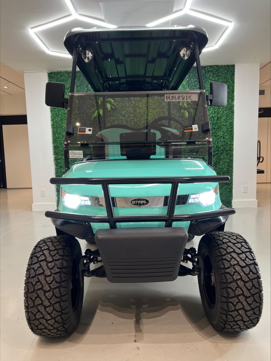 The lifted Capella 2+2 offers a lower center of gravity, easy entry, and a smooth, quiet driving experience ideal for neighborhoods, gated communities, and resort environments. Built with STAR EV’s efficient AC motor system and designed for effortless acceleration, this model provides dependable performance and ease of operation for daily use. Its comfortable front and rear seating allows four passengers to ride securely, while the vehicle’s clean lines, functional dash layout, and full lighting package create a polished, purpose-built cart suitable for both personal and light commercial applications.